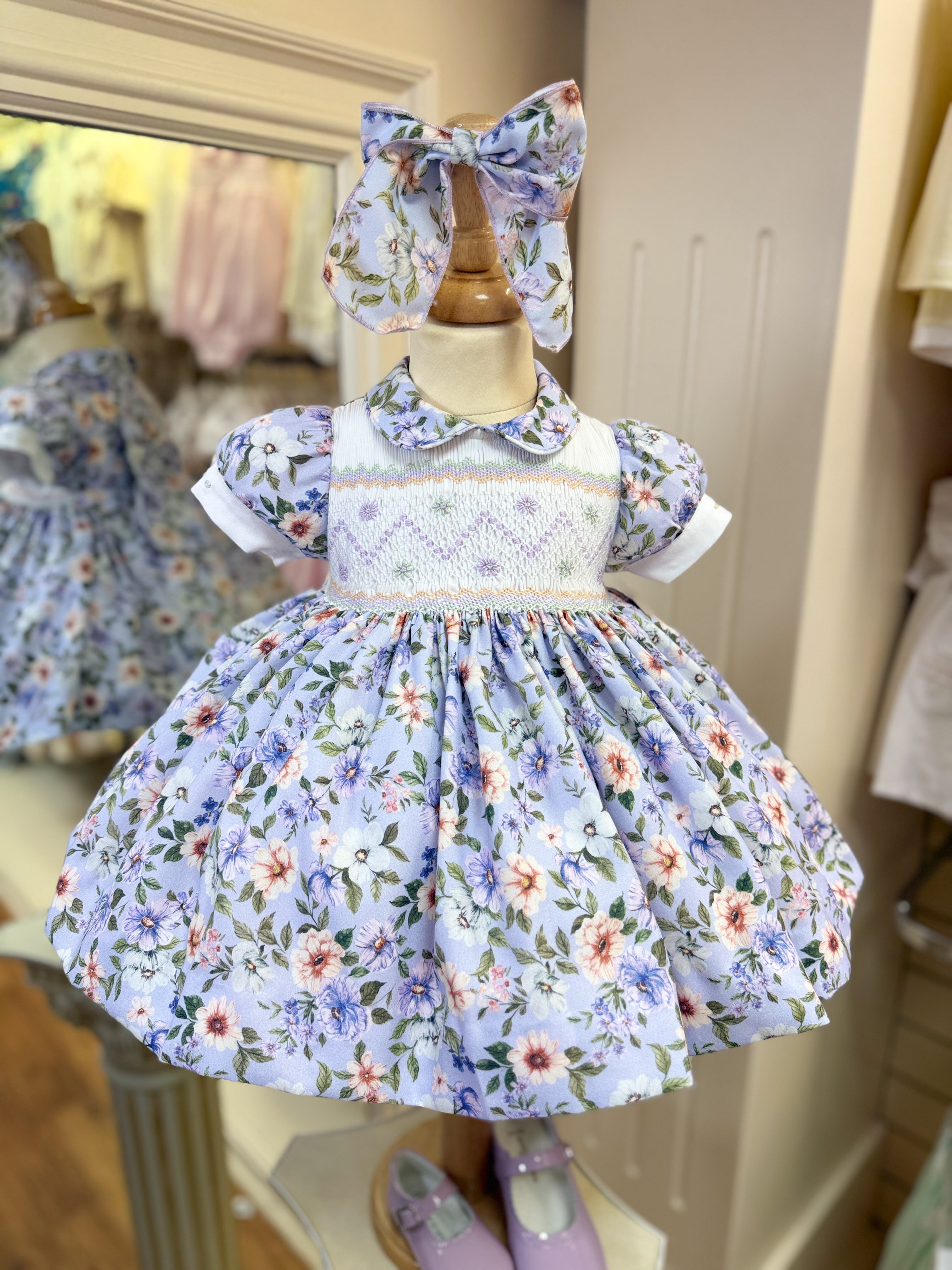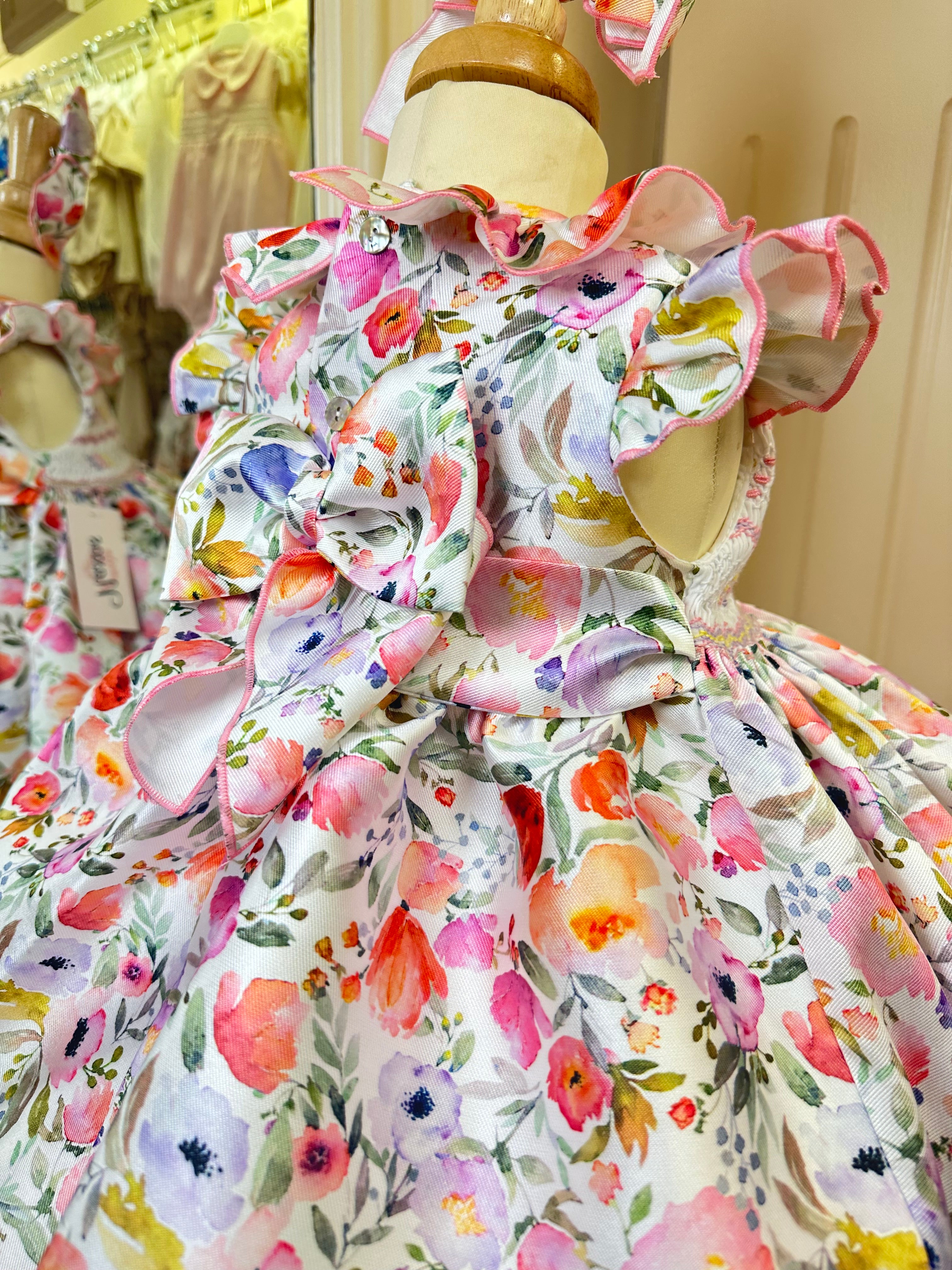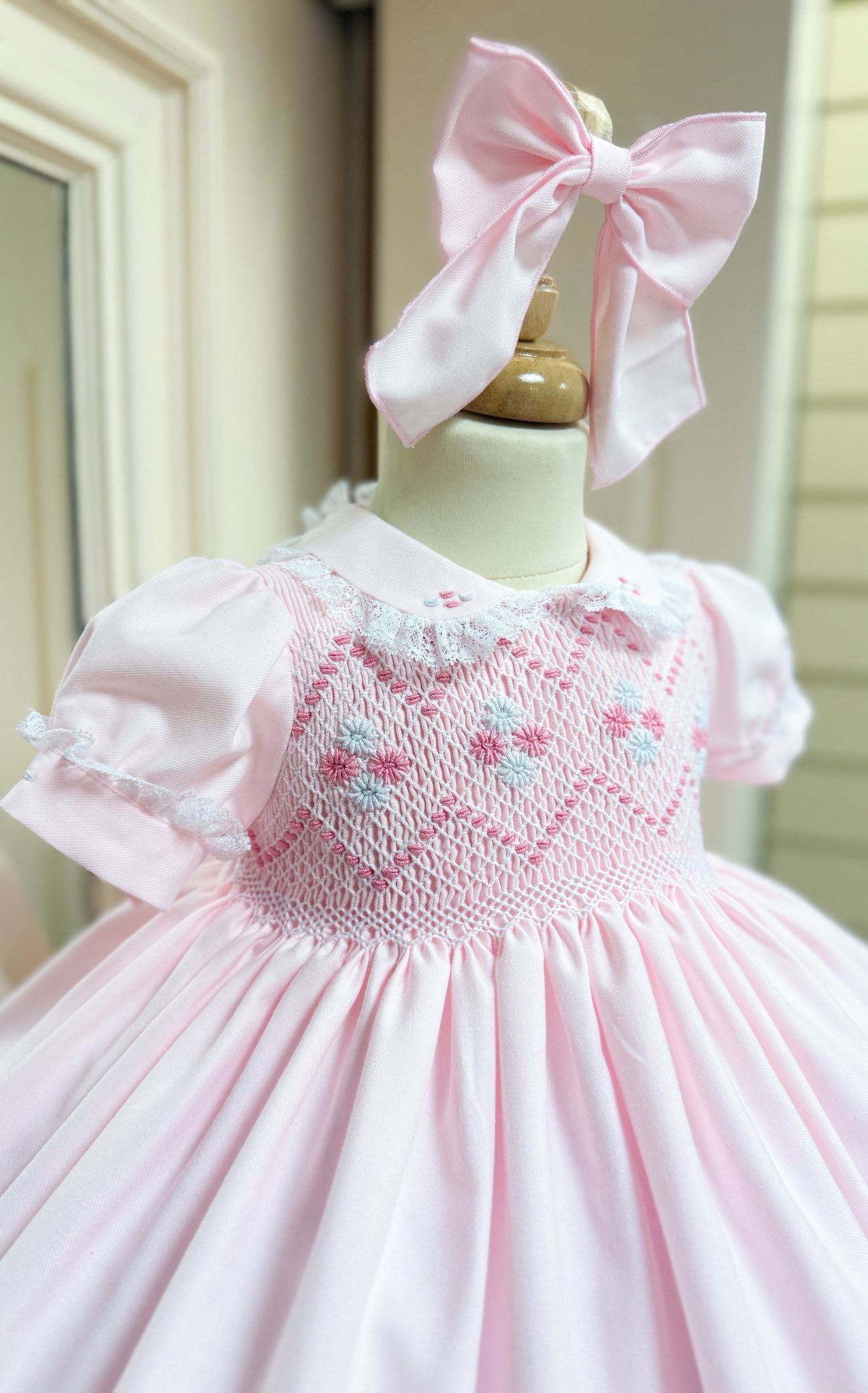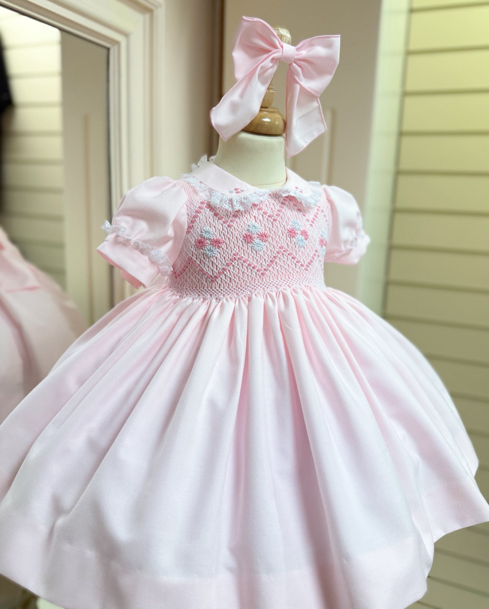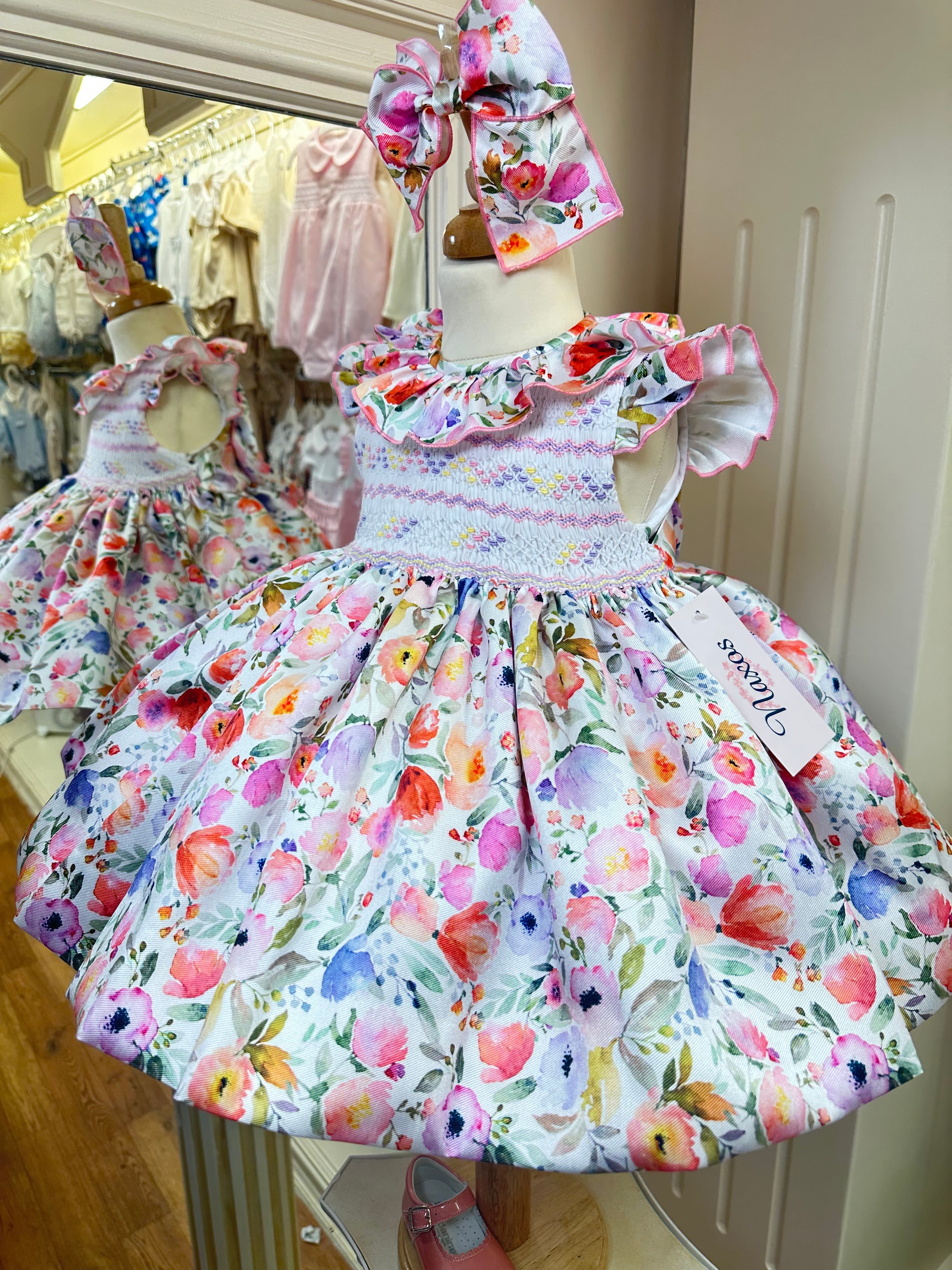Naxos Blossom Pink Floral Hand Smocked Dress