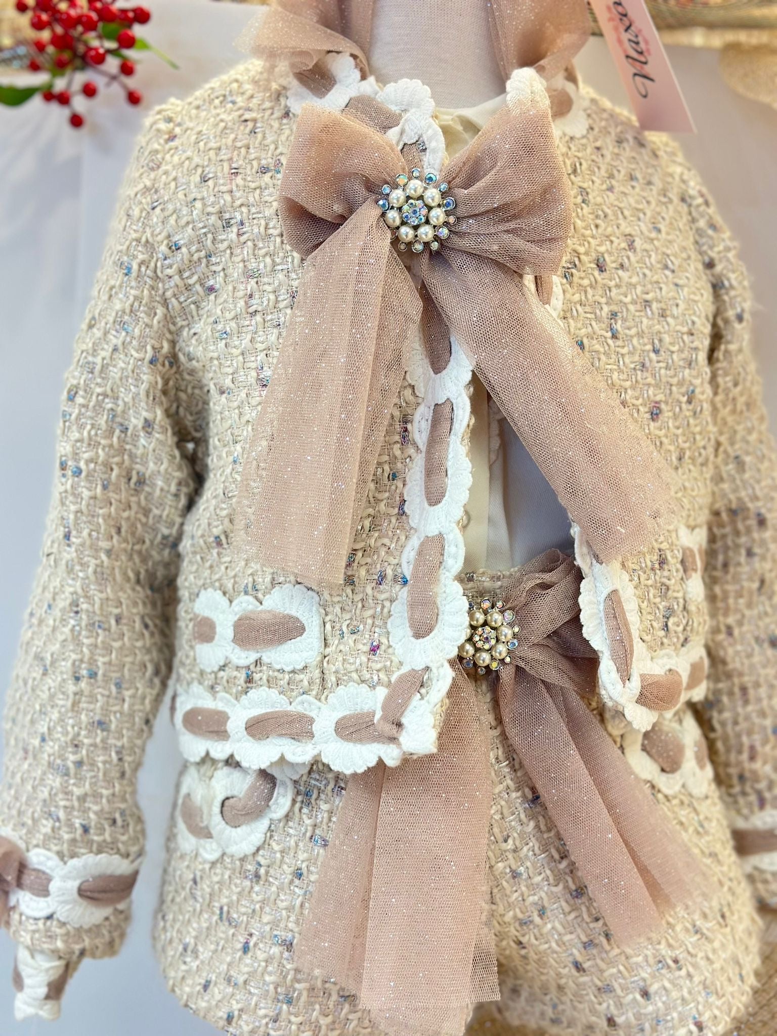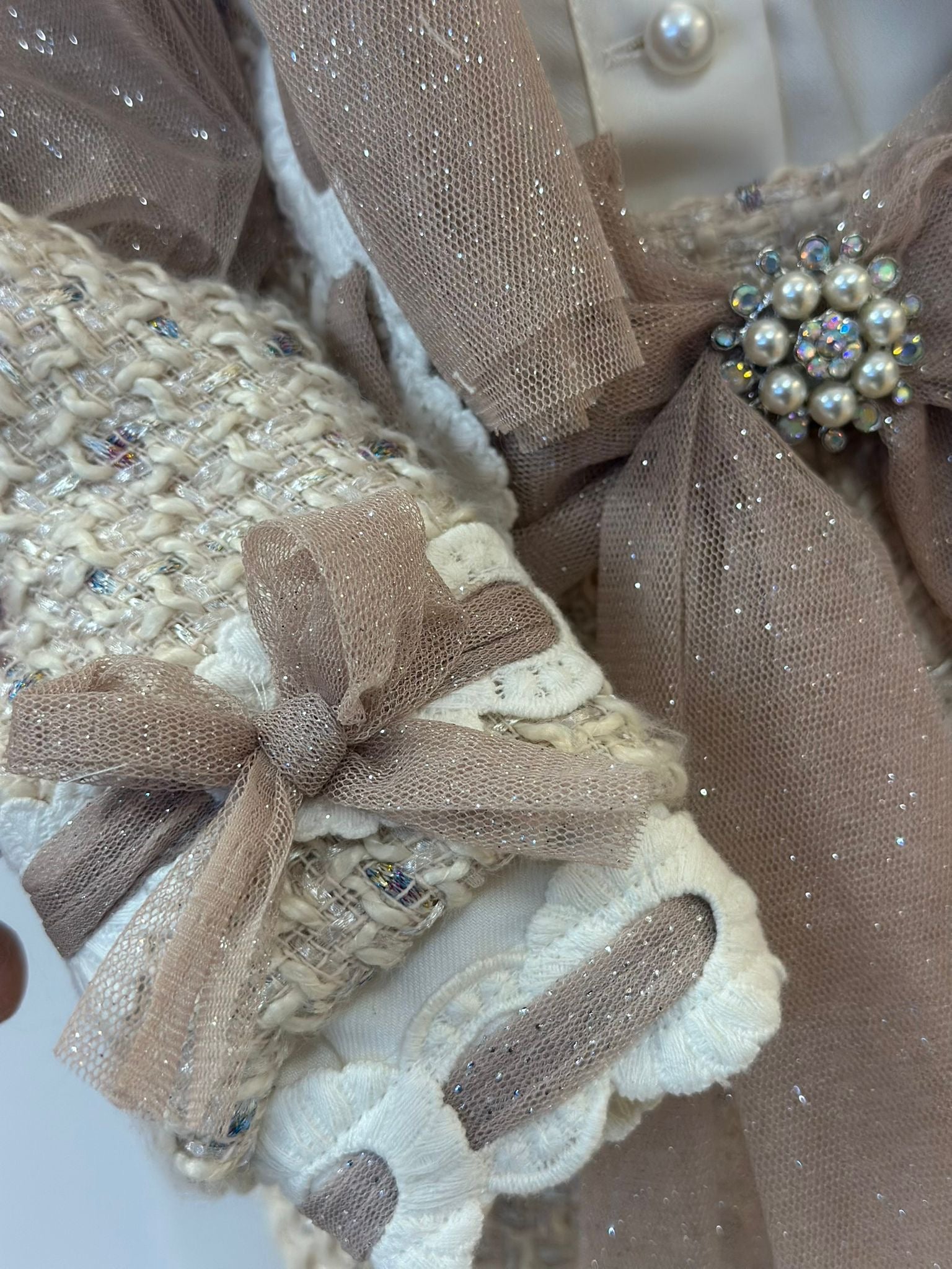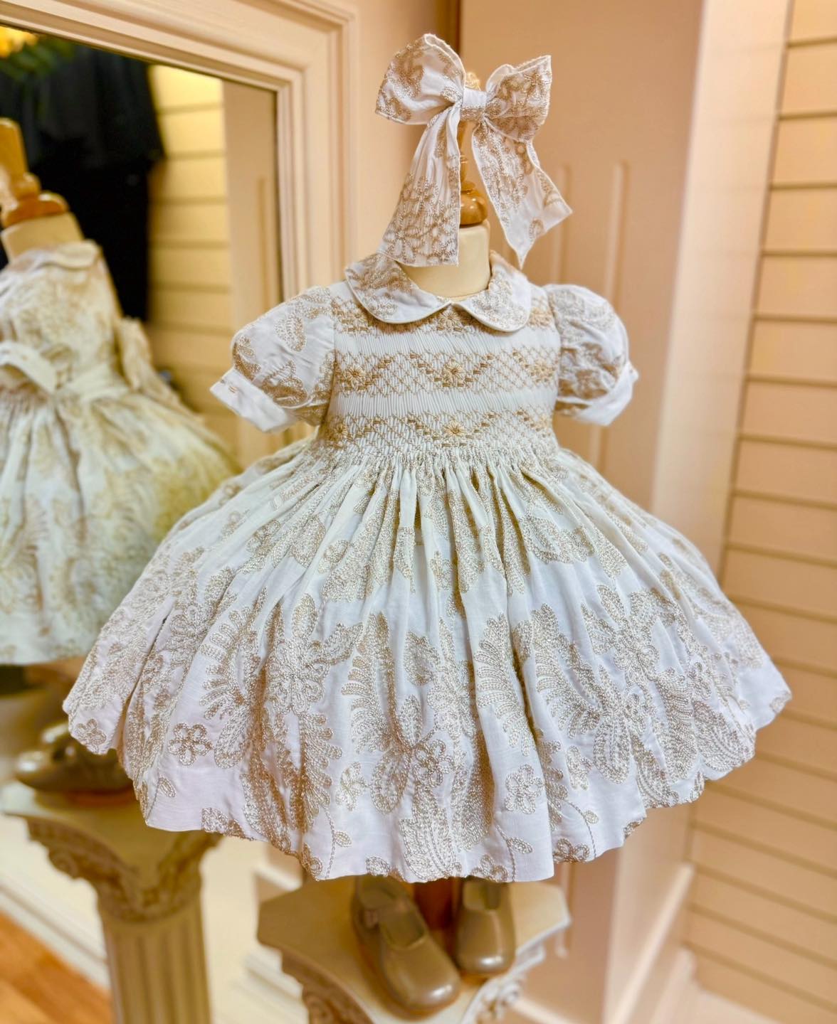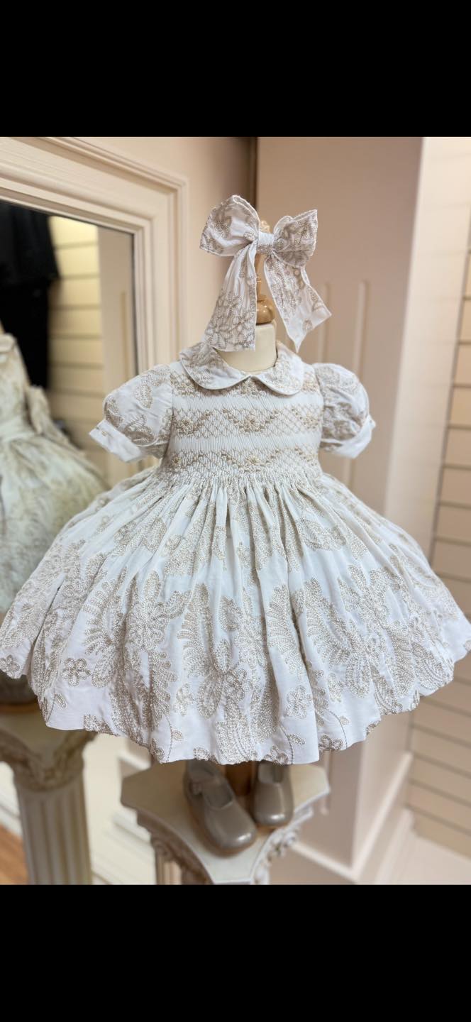 Naxos Angelina Ivory/Champagne Smocked Dress