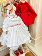 Pretty Originals Ivory/Red Smocked Dress, Bloomers and Headband