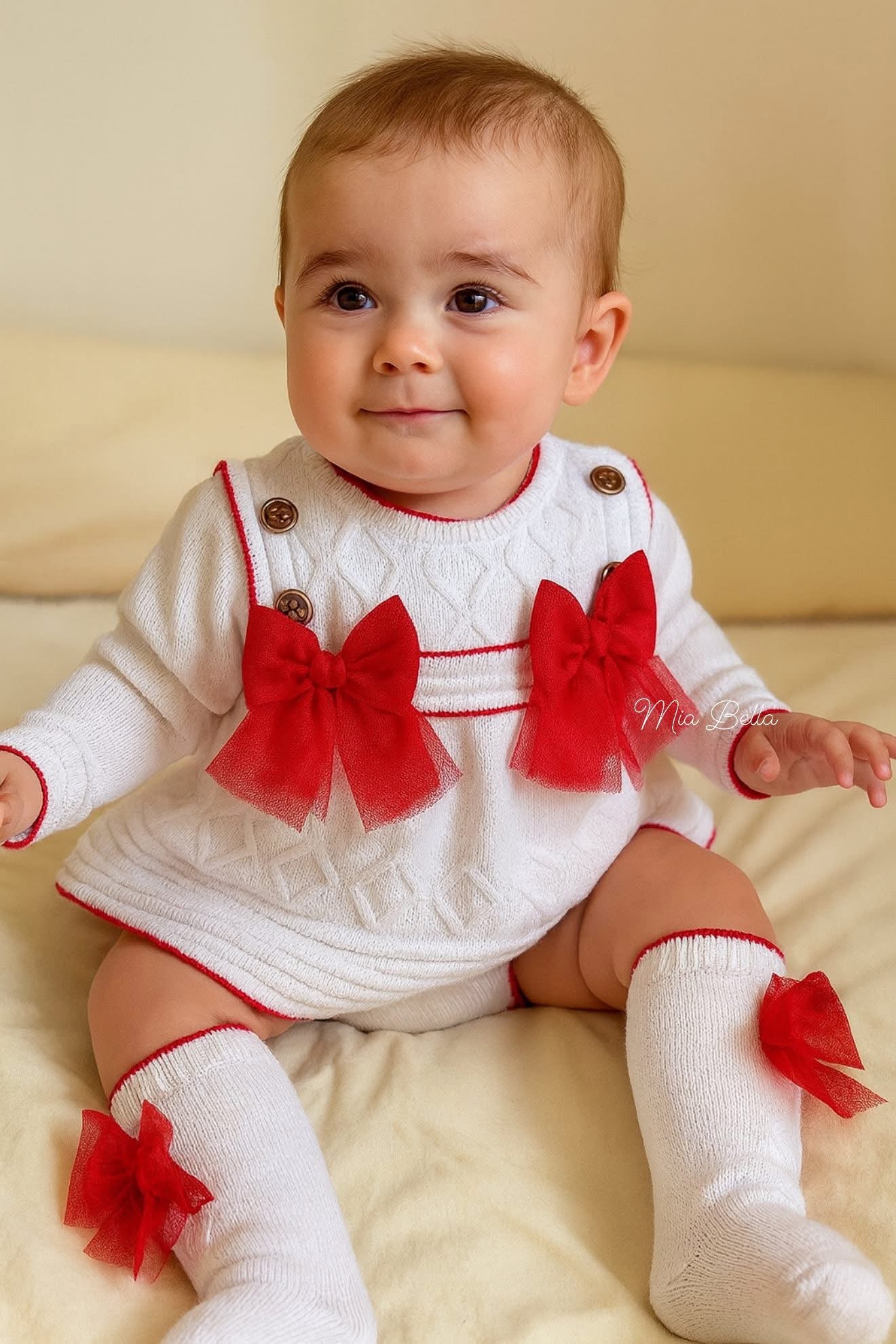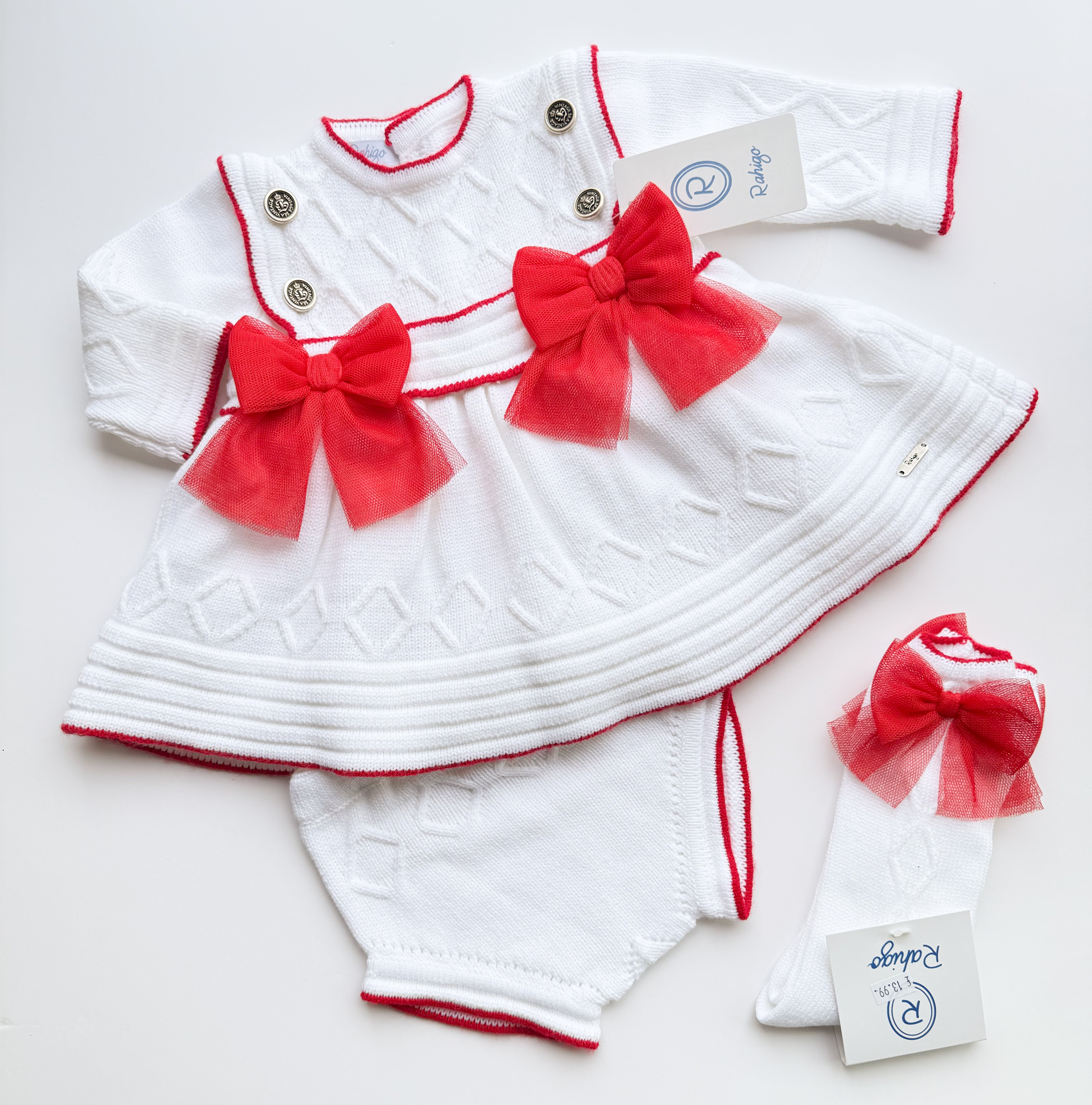 Rahigo White/Red Baby Girls Knitted Dress, Pants & Socks