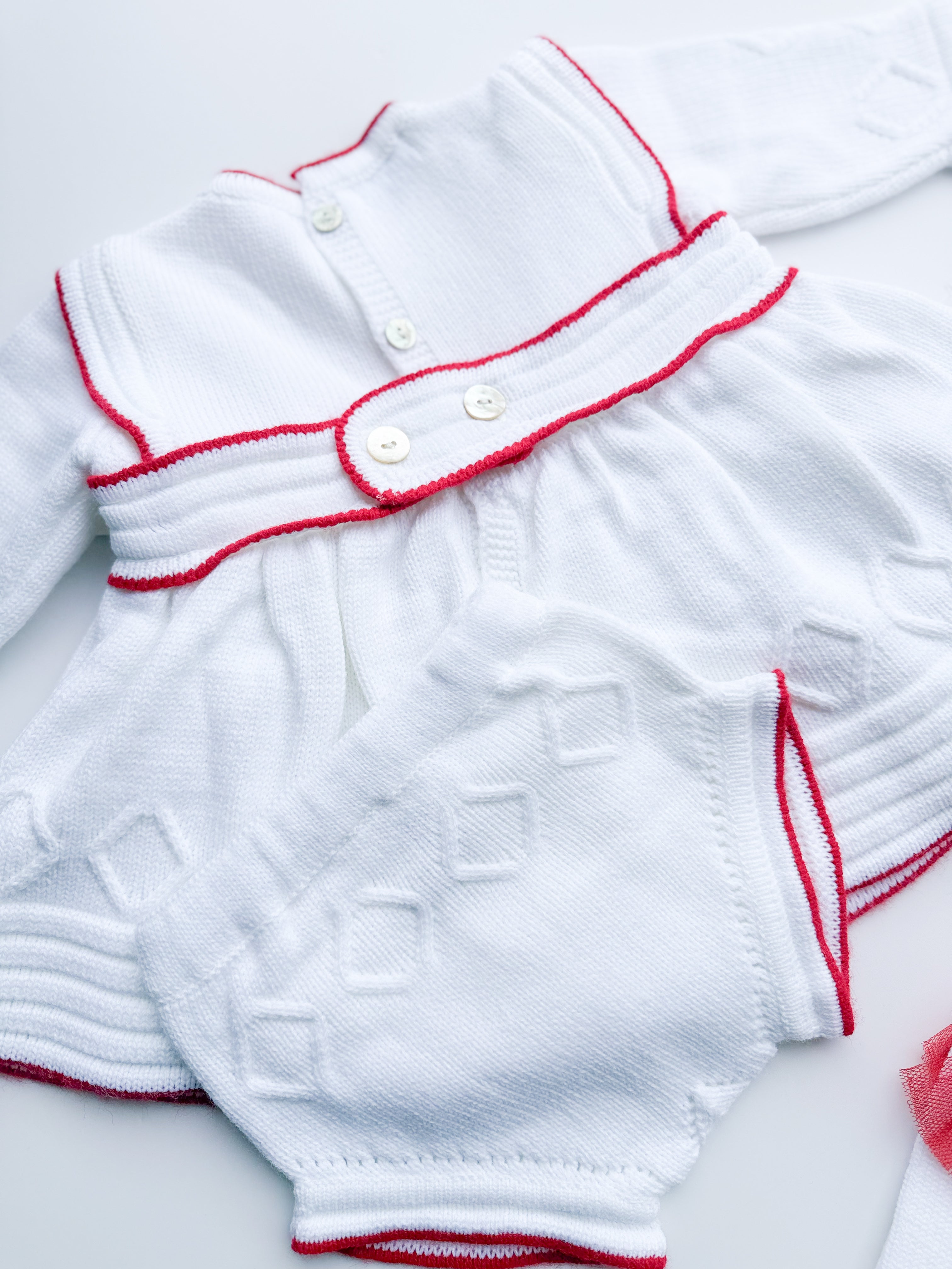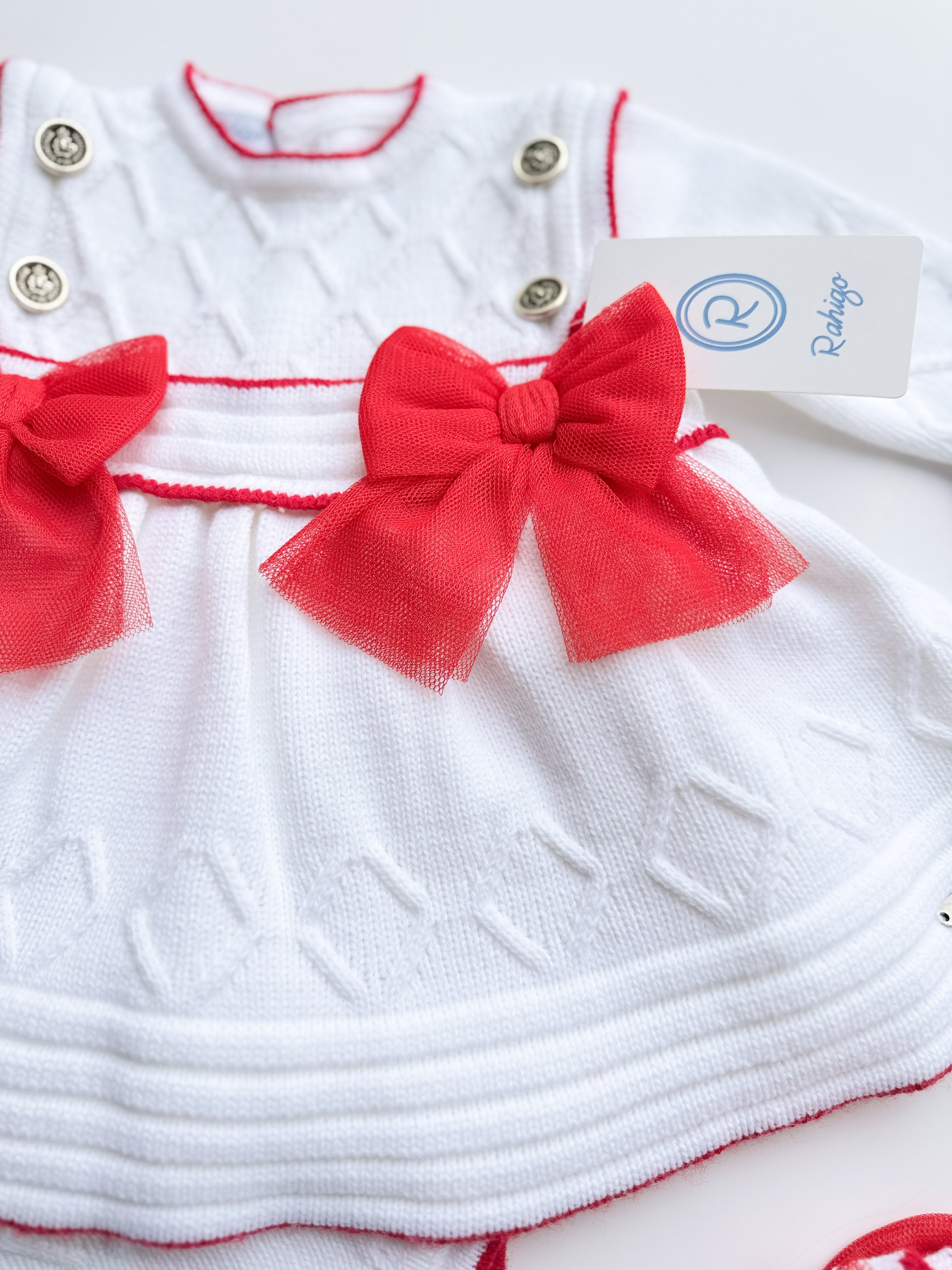 Rahigo White/Red Baby Girls Knitted Dress & Pants