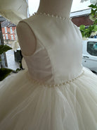 ivory ballerina length special occasion dress ,tulle skirt with bead detail & bow . in stock in age 2 .