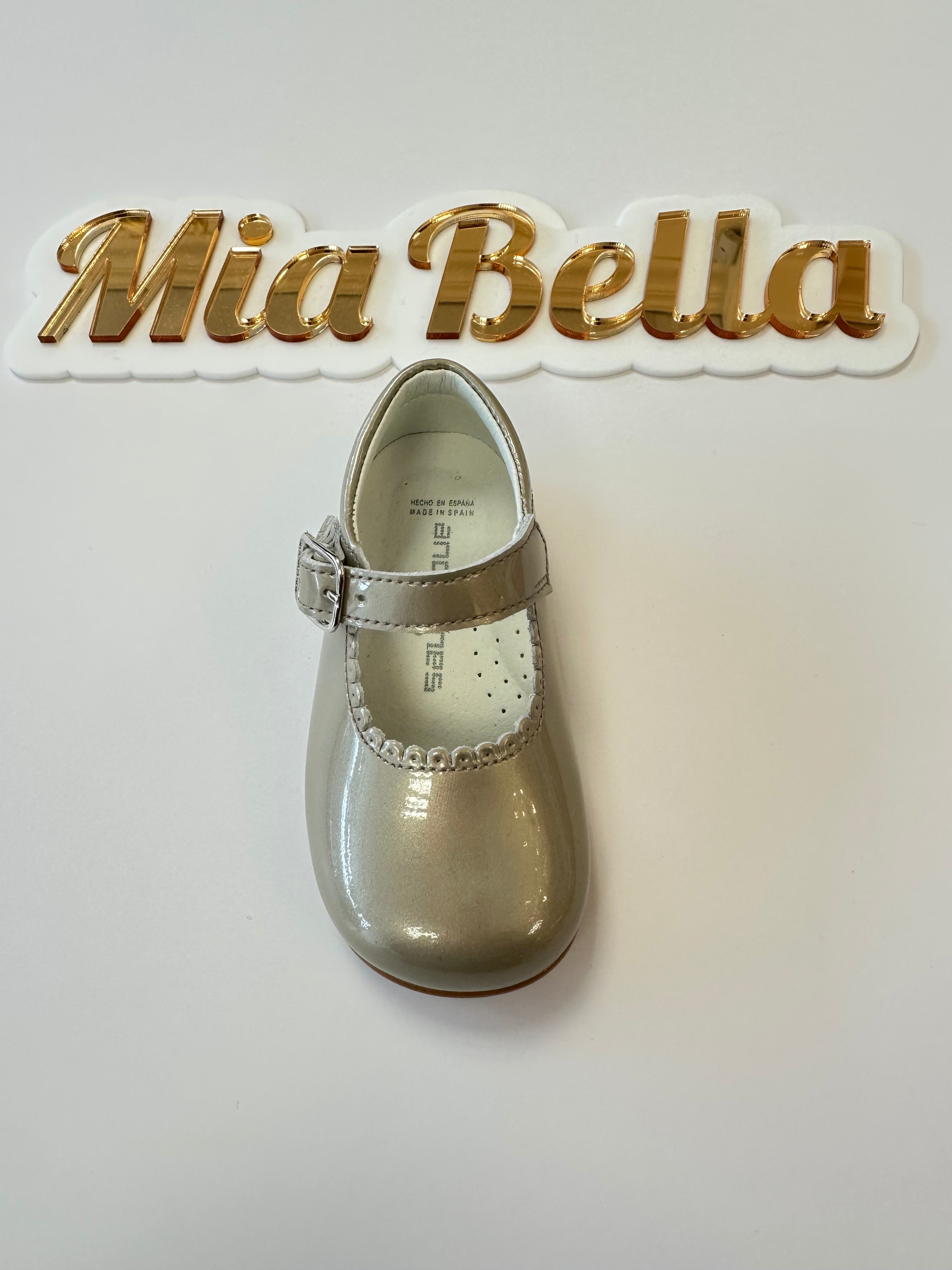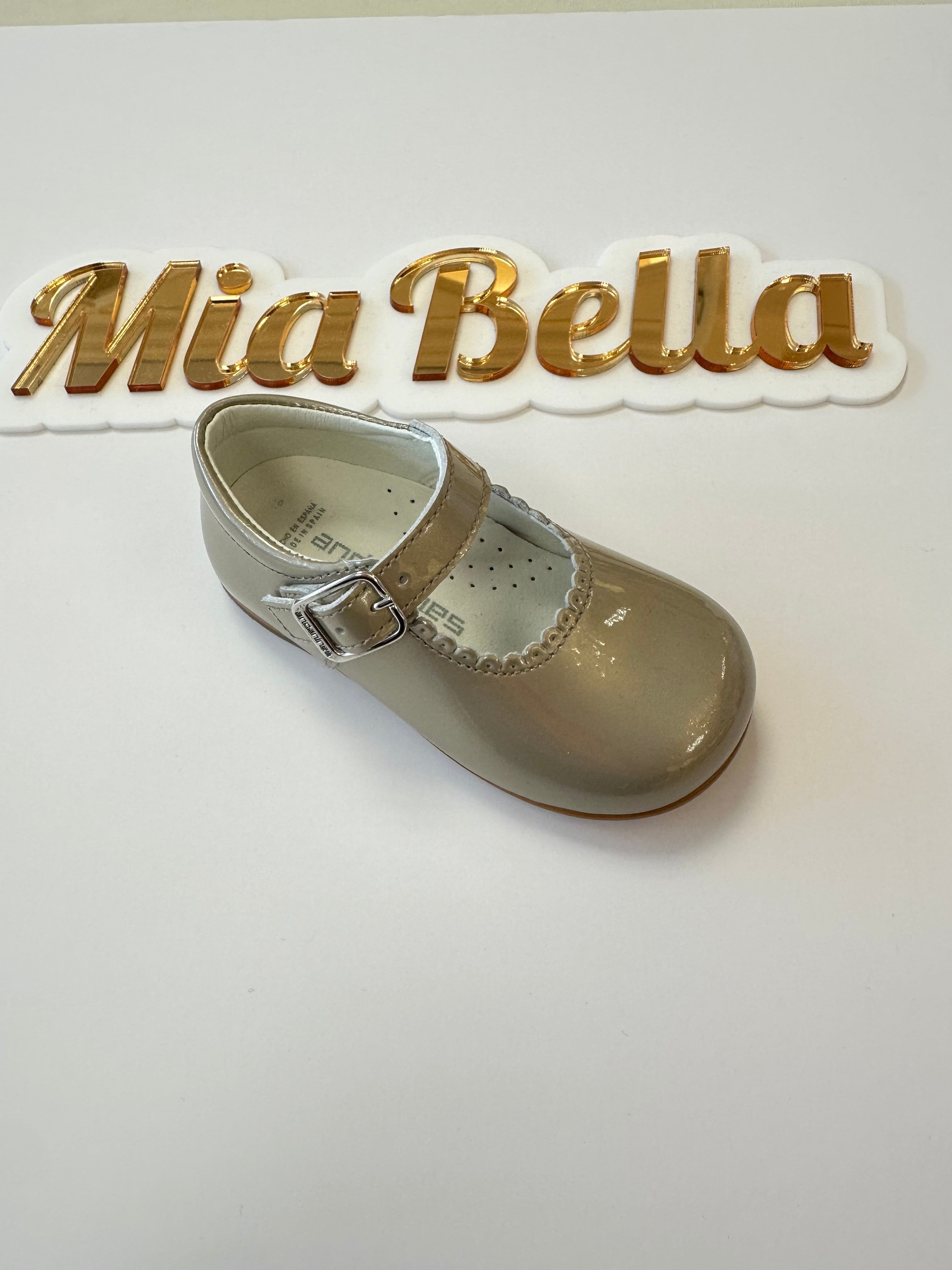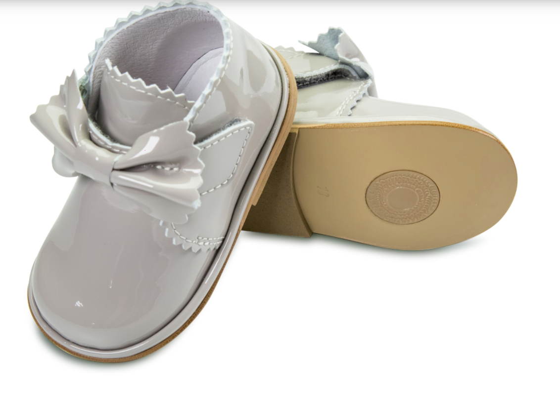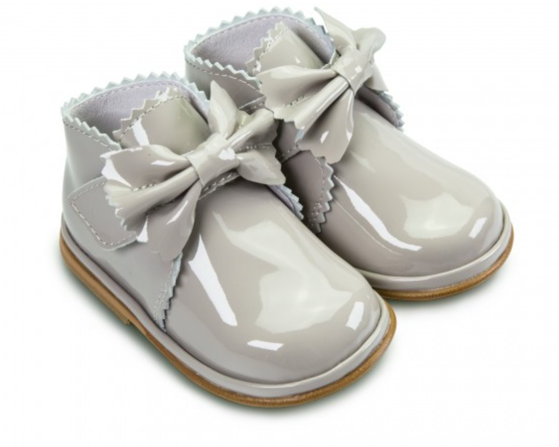 Sharon Boots Grey PATENT Leather Velcro Boot with Bow