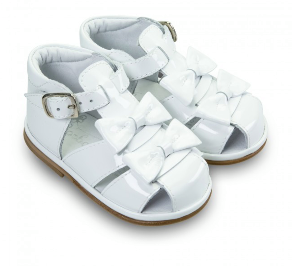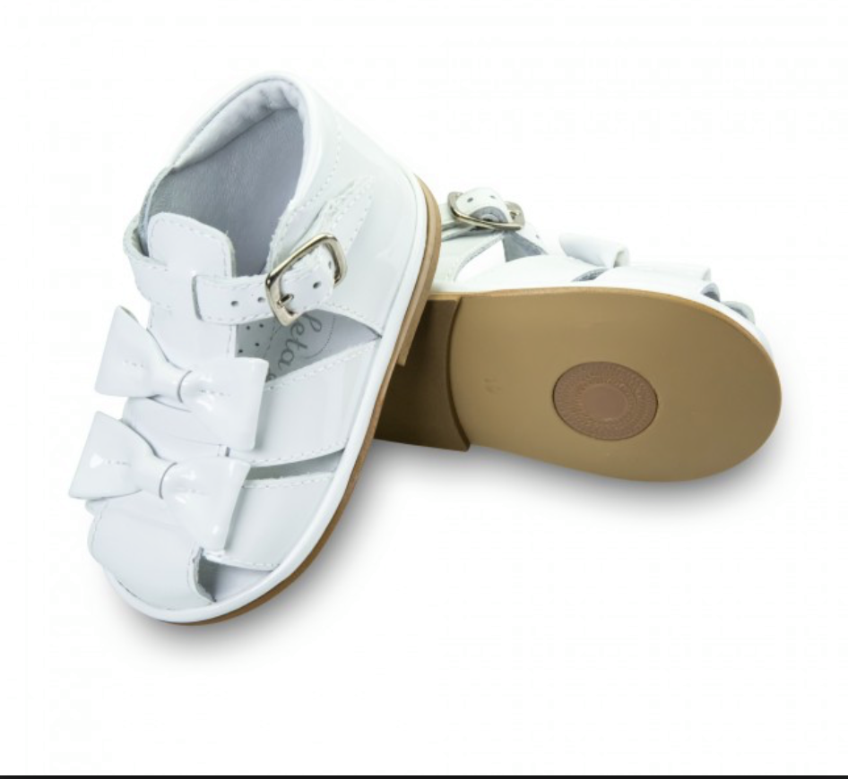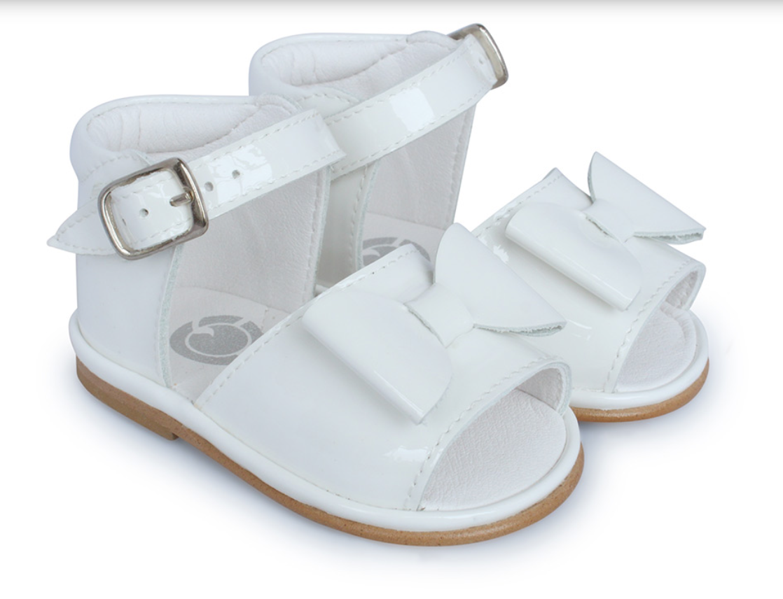 DINA White PATENT Leather Full Toe Sandals with Bows