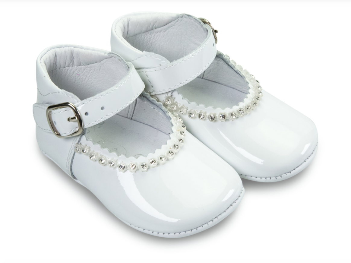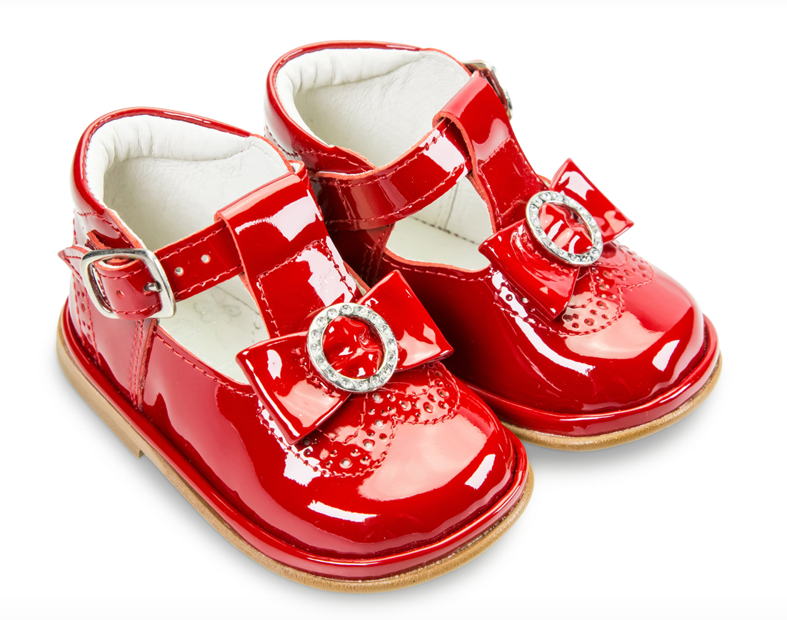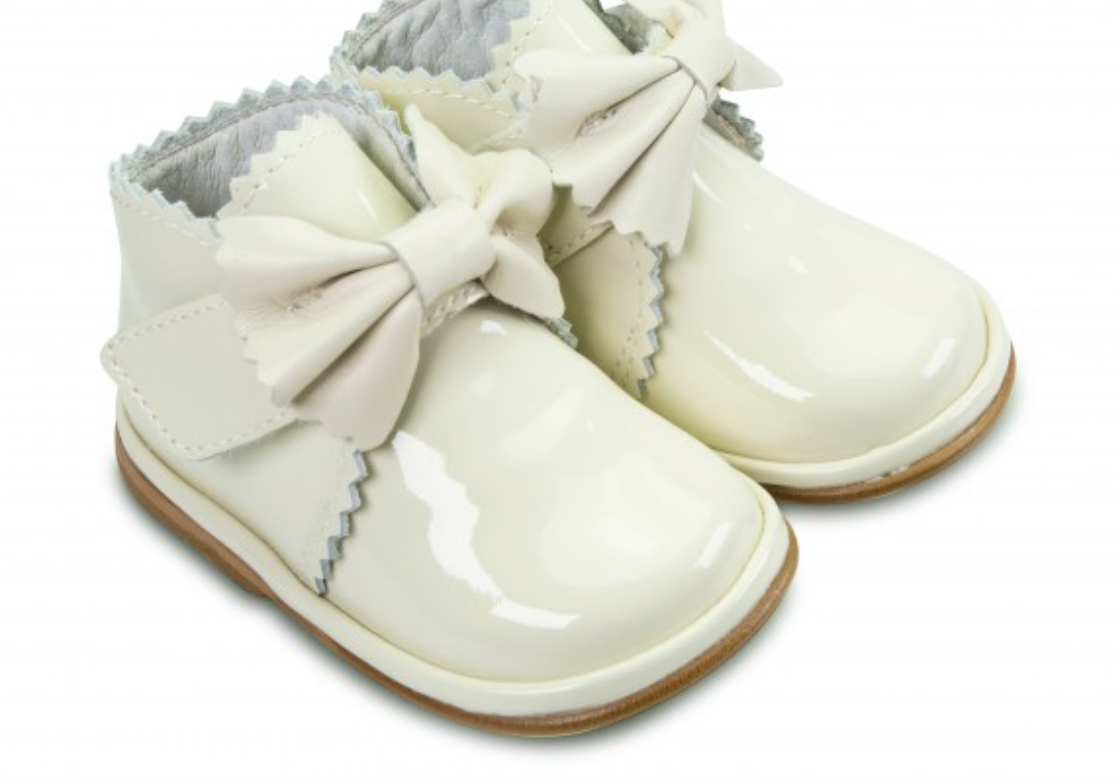 Sharon Boots Cream PATENT Leather Velcro Boot with Bow