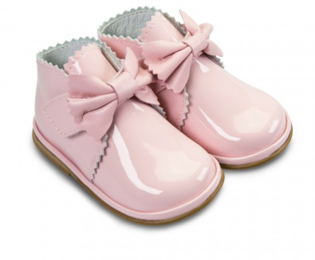 Sharon Boots Pink PATENT Leather Velcro Boots with Bow