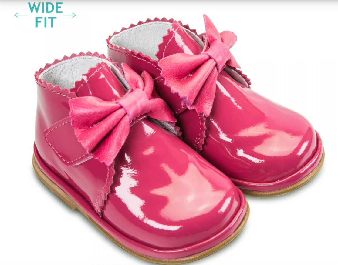 Sharon Boots Fuchsia PATENT Leather Velcro Boot with Bow