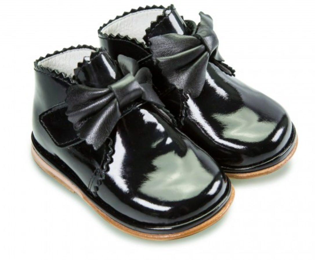 Sharon Boots Black PATENT Leather Velcro Boot with Bow
