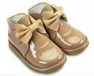 Sharon Boots Camel PATENT Leather Velcro Boot with Bow