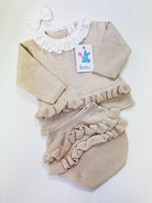 Mia Bella 2 Piece Knitted Frilled Jam Pants Set C5514A Camel