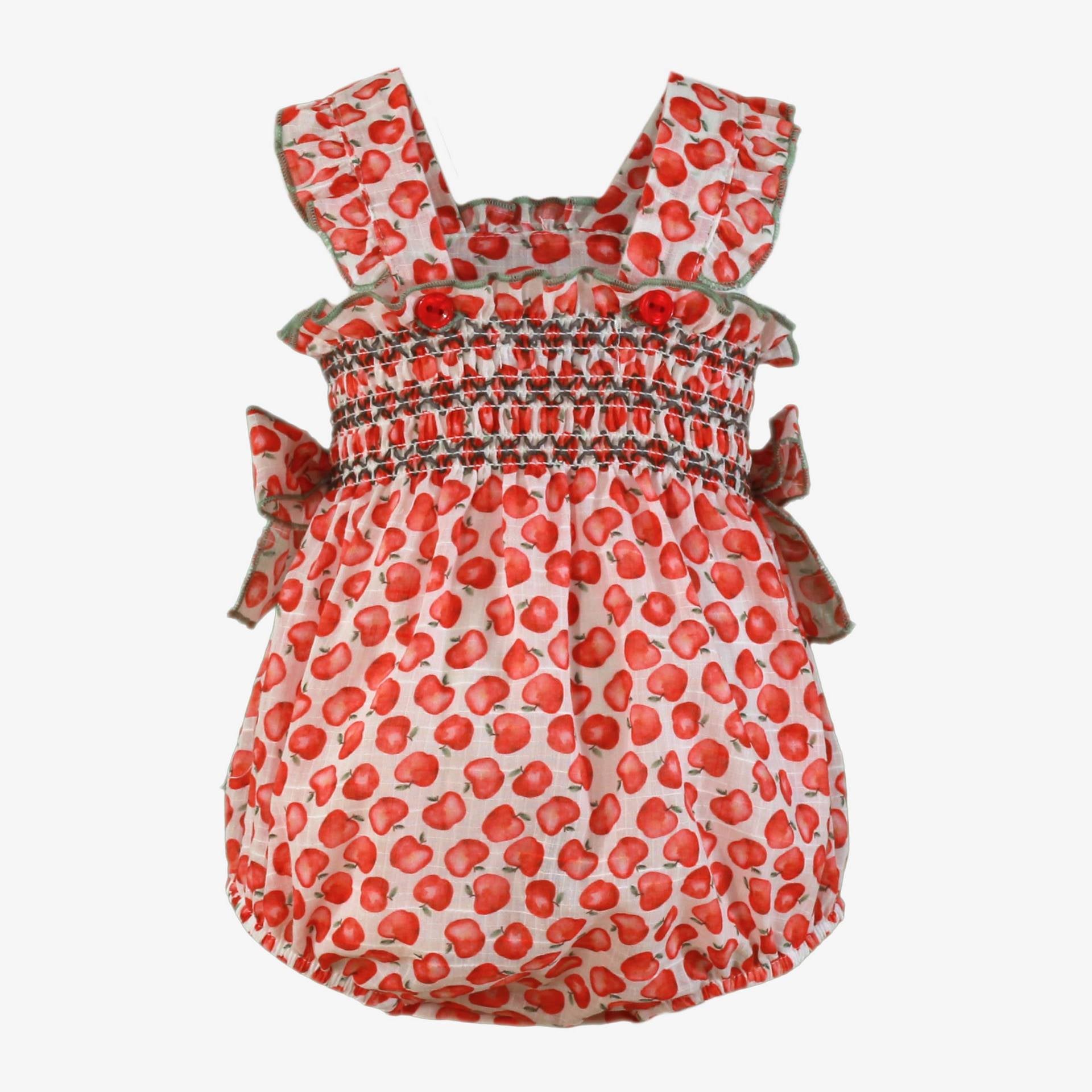 Miranda SS25 Apple Print Smocked Style Girls Romper