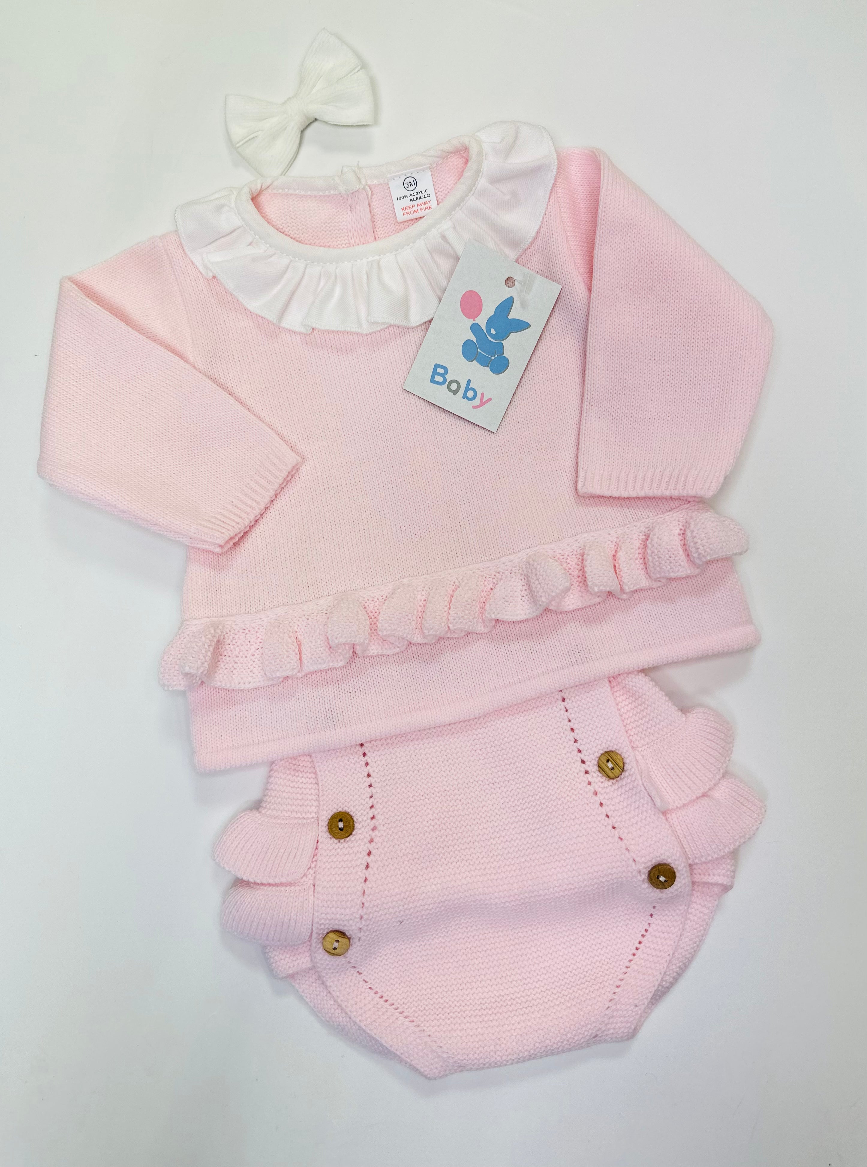 Mia Bella 2 Piece Knitted Frilled Jam Pants Set C5514A Baby Pink